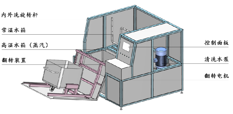須由人工進(jìn)行多角度傾斜清洗,勞動(dòng)強(qiáng)度大。